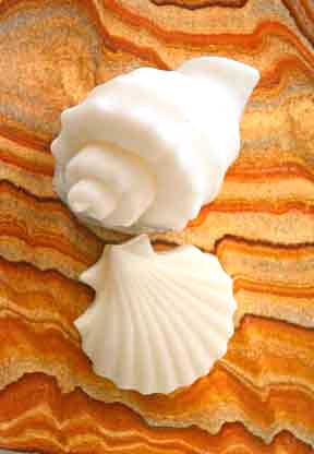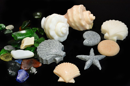 Be aware that not all shapes make good soap. Many of the shell shapes I show here aren't really a good choice for molds, interesting as they may be for color samples. I'm no fan of soaps that are impractical, including those that are "too pretty to use."
